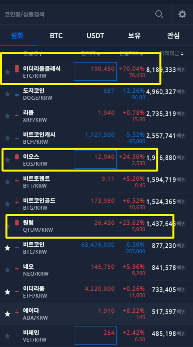 주식시장이 재미없다고, 코인시장으로 자금이 들어온 것도 있고.