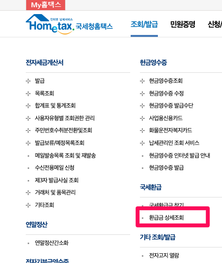 암튼 해당 조회는 국세청(홈택스)의 국세 환급금 인 듯 하다.