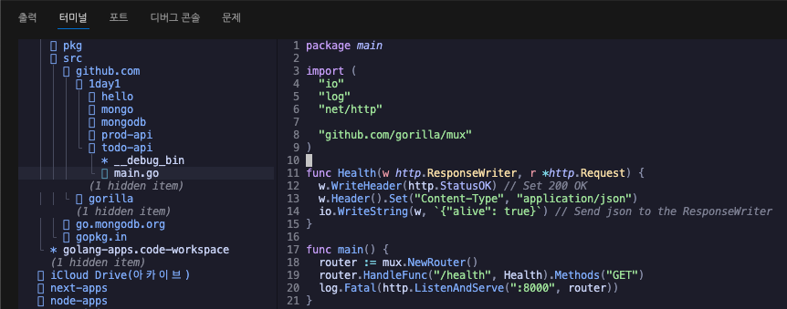 VScode 의 내장 터미널? 에서는 잘 되는 것 같다.