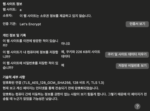 SSL 인증서는 어디서 세팅하나 했는데, 자동으로 세팅해주는 듯 하다. (letsencrypt 를 사용한다)