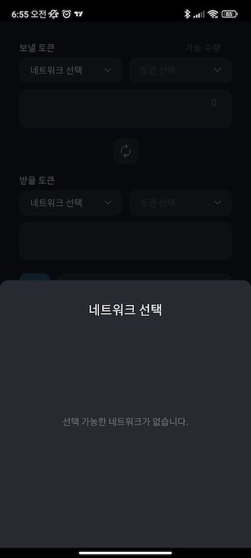 # 문제점 - 스왑 기능에 네트워크 선택이 비어서 나온다.