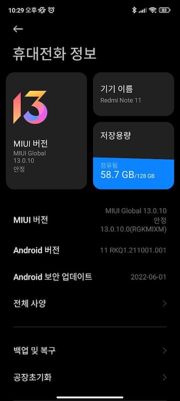 # 사용기기 - 샤오미 레드미노트 11