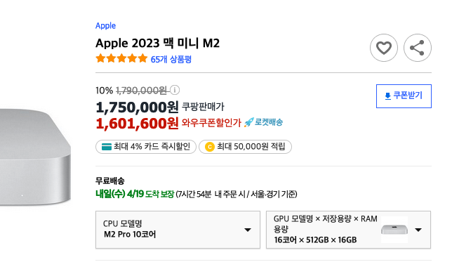 2023 맥미니 m2 pro 버전보다 가격이 40만원 가량 올라간 것 같다.