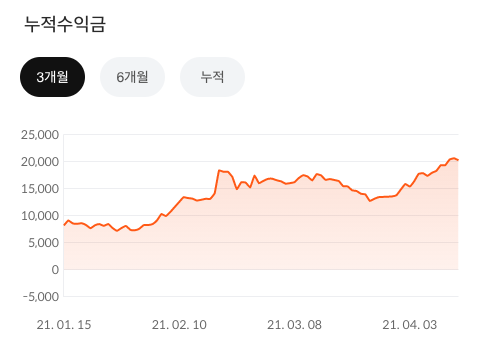 이제는 어느정도 안정화 된 듯 하여, 주요 서비스들이 많은 성장을 하고 있다. (수익률이 수십% 정도)