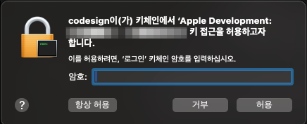 아마도 애플 개발자 계정 세팅을 해야 하는 듯 하다.