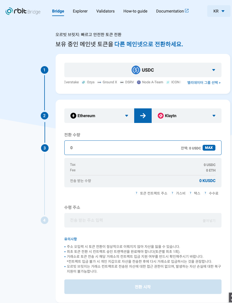 2) ETH 메인넷 => KLAY 메인넷 으로 코인 전환(이때 orbit 브리지 이용)