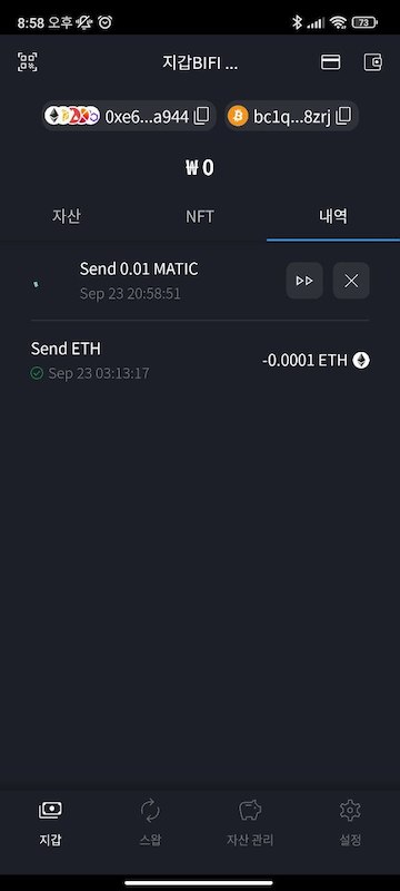 메인넷에 matic 을 전송하여 테스트 해봤다.(즉, 실제 돈)